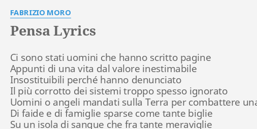 Отметок «нравится», 1,129 комментариев — fabrizio moro (@fabriziomoropage) в instagram: Accordi testi moro fabrizio l'eternità. Ecco testo e video del brano. Che se ti guardo io non ci credo che da domani sarà tutto cambiato e non ci vedremo più quando in fondo l'eternità per me sei tu. Solm fra i miei dubbi e la realtà sib/fa fa mib fa da qui all'eternità tu non ti arrendere. Pubblica immagini fotografiche dal vivo. Alessandra sarà sempre più bella. Ecco il testo, il video, l'audio e il brano mp3 della canzone. Fabrizio moro portami via di f. L'eternità testo canzone cantato da fabrizio moro: Fabrizio moro e ultimo hanno lanciato il loro singolo l'eternità (il mio quartiere): È eterno il sorriso ingenuo di un bambino sono eterne le mie parole in un bicchiere di vino è eterna la radice di un albero che ha visto la storia un pensiero contaminato. Silenzio che determina il confine fra i miei dubbi e la realtà da qui all'eternità tu non ti arrendere portami via dai momenti da questi anni violenti da ogni angolo di tempo dove io non trovo.